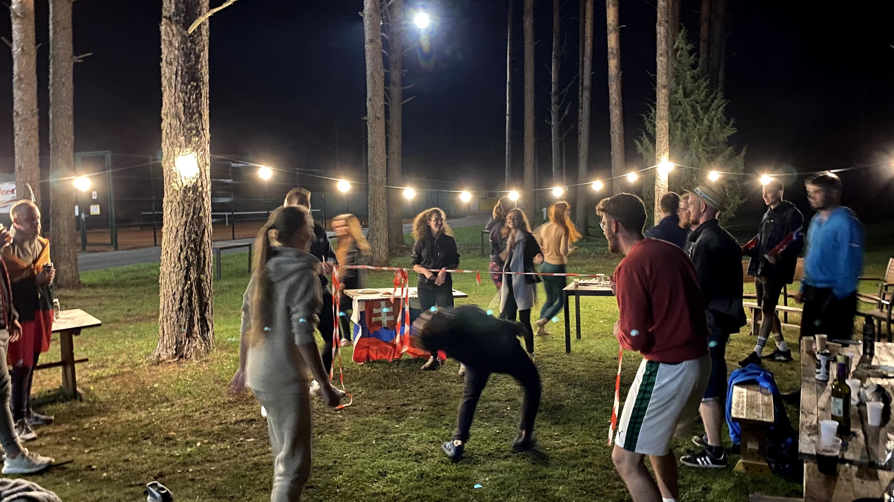 Mõned varajased saabujad aitasid ka välisõppe klassi üles seada. Nii ilusas kohas sooviks ju värske õhu käes olla. Samuti pidi arvestama, et meie projekti noortel oleks õhtul koht kus olla, ilma et me kedagi segaks. Jõulumäel oli mitmeid teisi laagrigruppe ning nooremad spordilapsed peavad normaalsel ajal öörahu saama. Välisõppe klass õnnestus väga hästi, nii töötubasi kui ka õhtuseid koosviibimisi oli hea läbi viia meie enda väikeses nurgakeses männipuude vahel. Valguskett tekitas mega mõnusa atmosfääri ja keegi pimedas telefon taskulambiga koduteed ei otsinud.